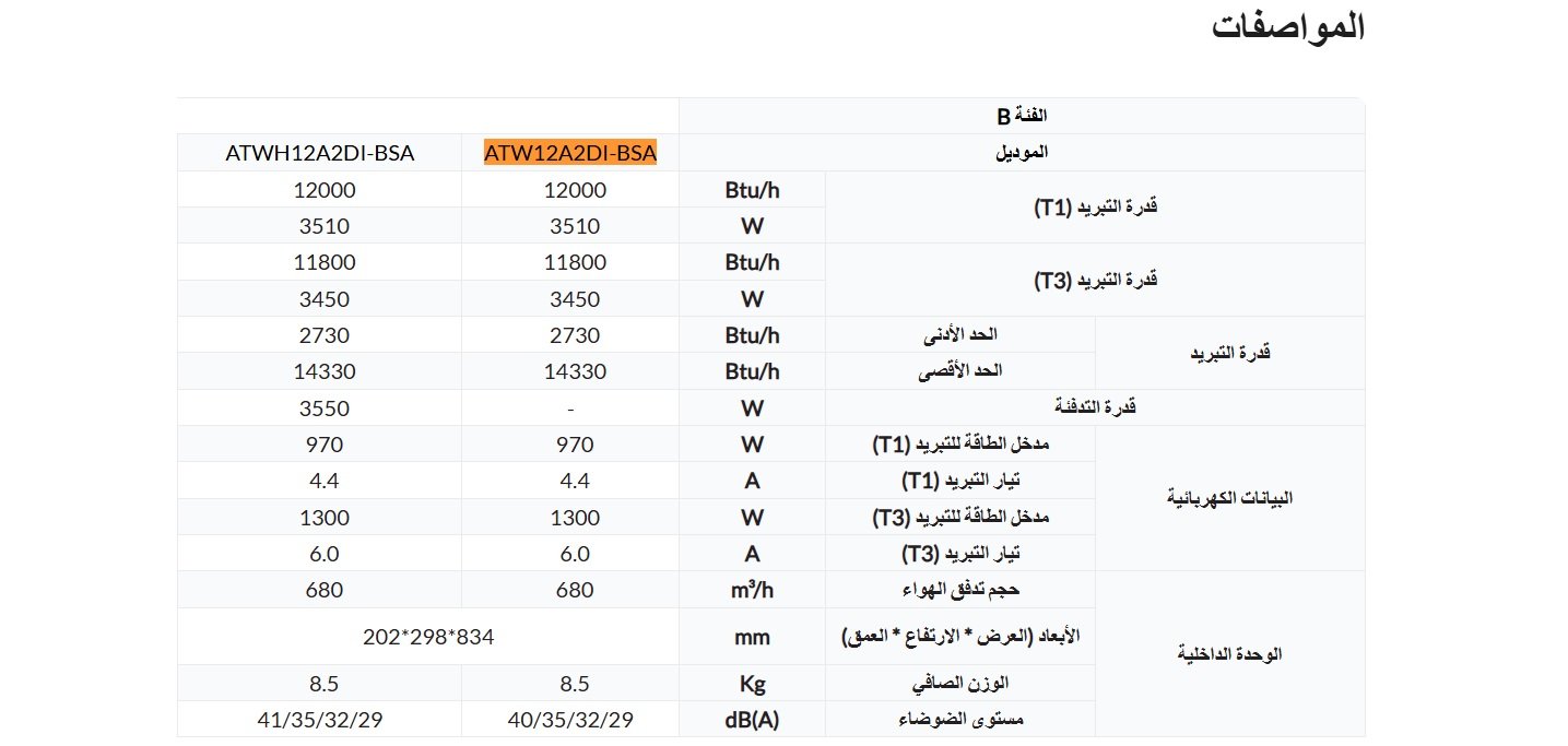 اوكس aux مكيف اسبليت بارد سعة التبريد 12000 وحدة انفرتر واي فاي (Ultra Cool) AUX ATW12A2DI-BSA