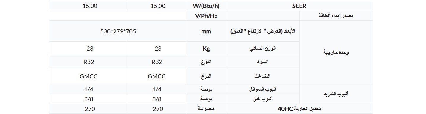 | نسبة كفاءة الطاقة الموسمية (SEER) | 15.15 |