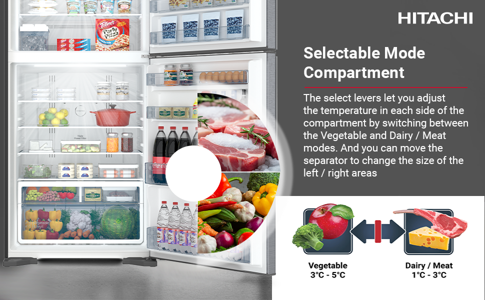 ثلاجة هيتاشي 24.8 قدم سعة الثلاجة 18.2 قدم سعة المجمد 6.6 قدم اسود لامع انفرتر (تايلندي)