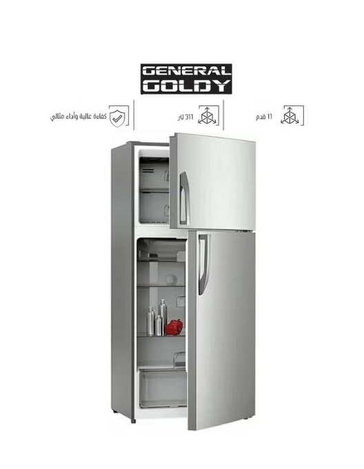 جنرال جولدي ثلاجة بابين 11 قدم – أرفف زجاجية وإضاءة داخلية – فضي – GR311DF