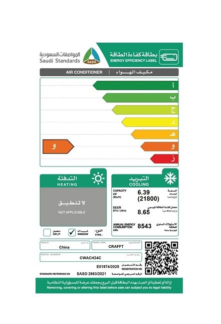 ❄️ مكيف شباك كرافت ( CWACH24C ) – 21800 وحدة تبريد