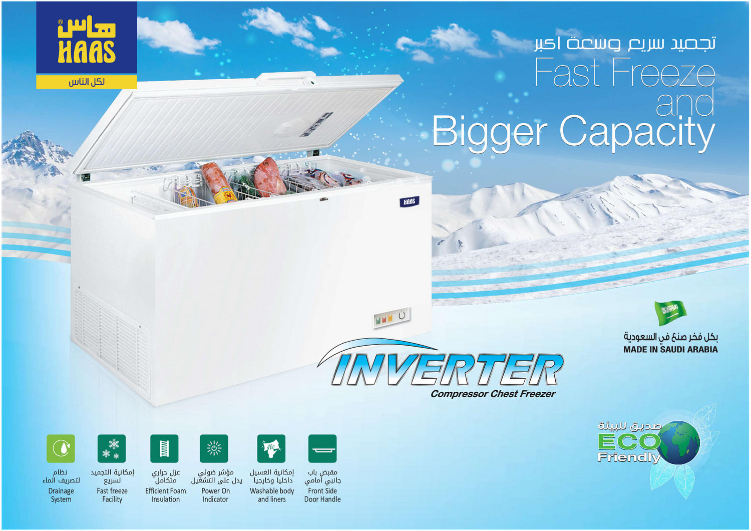 يمنحك فريزر هاس الأفقي سعة 7.1 قدم – 200 لتر – HF285VINV أداءً مميزًا لتخزين وحفظ الأطعمة بكفاءة عالية. يتميز بتقنية التجميد السريع التي تضمن تجميدًا فوريًا عند الحاجة، مع عزل حراري متين يحافظ على البرودة لفترات أطول ويقلل من استهلاك الطاقة. تصميمه الداخلي مجهز بسلة تخزين عملية تساعدك على تنظيم المحتويات بسهولة والوصول إليها بسرعة.
